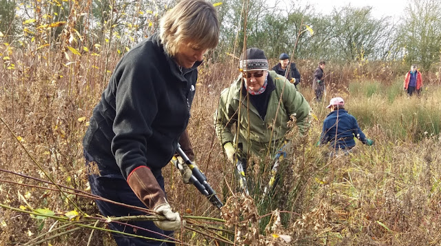 to continue the coppicing of the willow, which thrives on the wet ground. At first sight, the area where we had worked